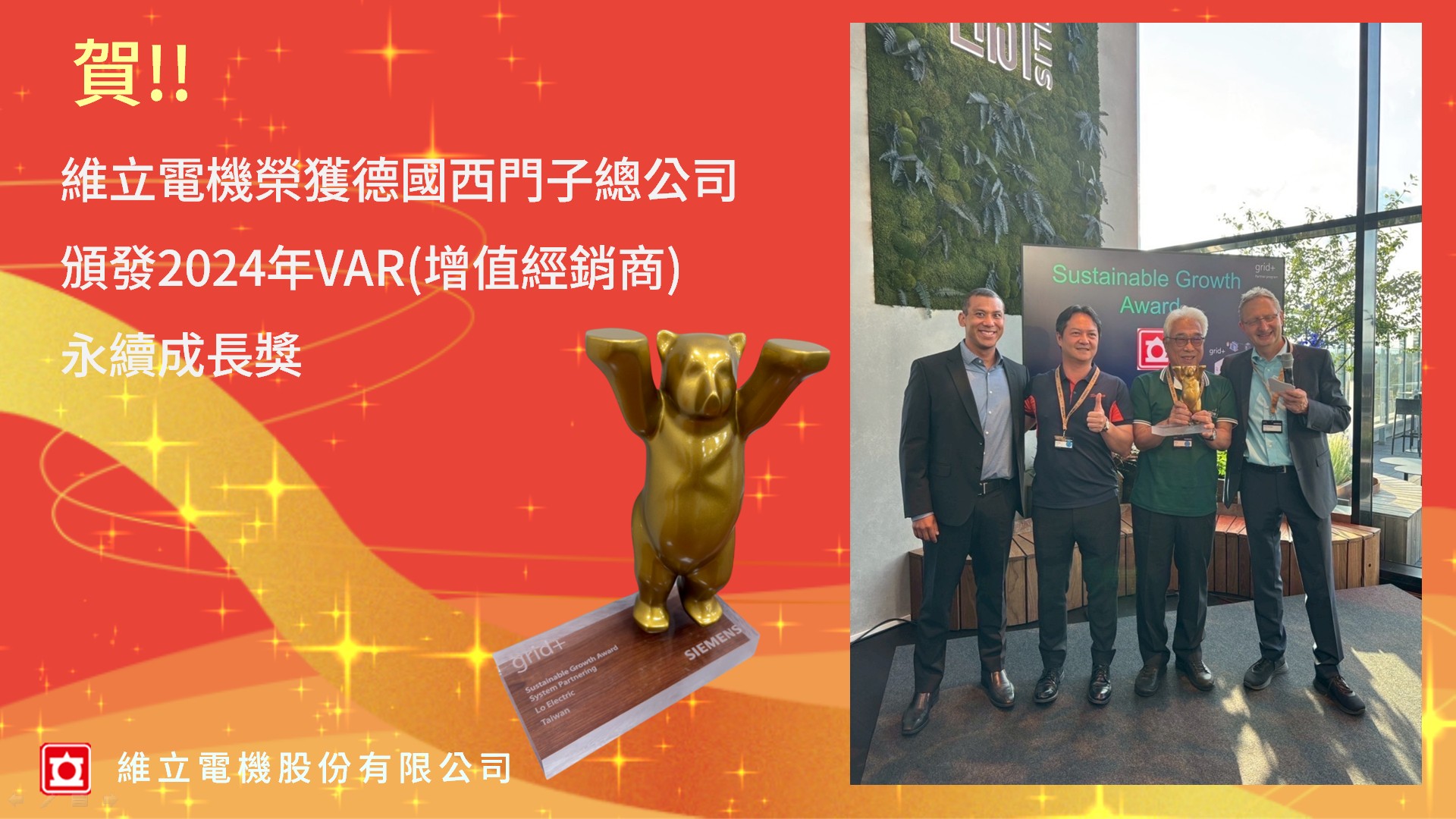 - 賀維立電機榮獲德國西門子總公司頒發2024年VAR(增值經銷商)永續成長獎